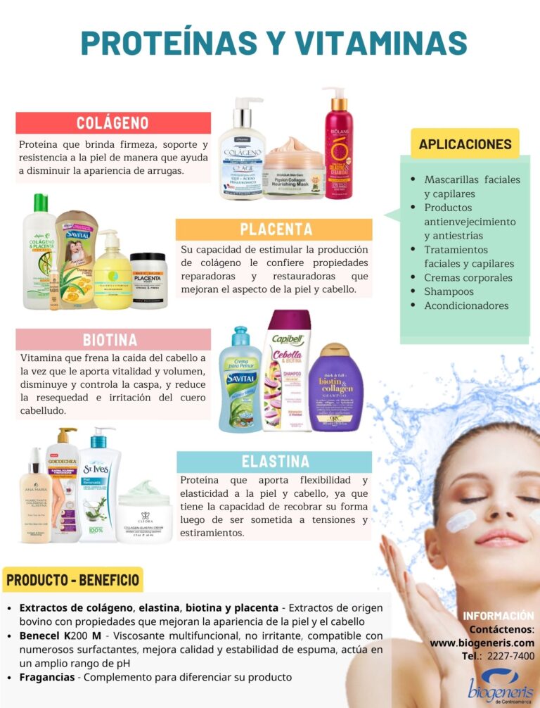 Dota a tus productos de beneficios para piel y cabello con nuestras proteínas y vitaminas.